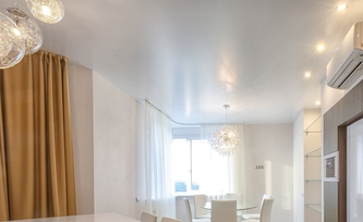 Светоотражение. В отличие от глянцевых потолков, сатиновые не создают «зеркального» эффекта, но мягко рассеивают свет, добавляя объёма пространству.